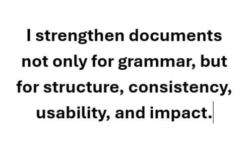 I am committed to helping you turn complex ideas into clear, polished, and professional documents through expert review, thoughtful refinement, and a personalized touch.